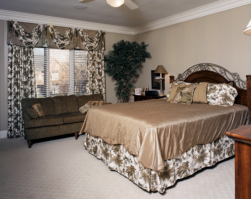 Elegant fabrics and warm neutrals combined to make this master bedroom a haven for this couple.  The sofa provides them with a place to have occasional private moments with each child.